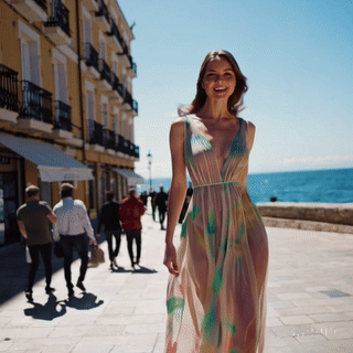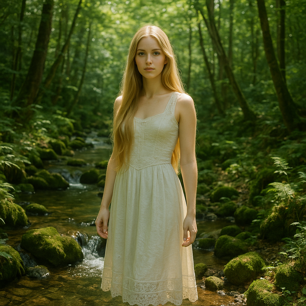 Navia salió de su casona indiana de Villacarriedo, oculta tras un prado de verde esmeralda y una hilera de hayas que filtraban las miradas indiscretas desde la carretera. Aquella mañana fresca la había sorprendido practicando un breve set de chi kung junto al estanque, movimientos lentos que parecían prolongar el rumor del agua. Tras la práctica, eligió uno de sus vestidos favoritos: una pieza larga de gasa mezcla de seda y lino, color melocotón pálido, tan ligera que el sol dibujaba en transparencias la curva plena de sus caderas y el contorno firme de sus piernas. El escote, amplio, sugería más que mostraba; cada pliegue caía con naturalidad sobre la cintura, insinuando un balanceo suave —casi ritual— de fertilidad antigua. Ningún collar competía con la tersura de su cuello ni con la lumbre serena de su sonrisa, capaz de desarmar a cualquiera.